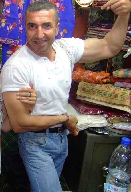 When I first spotted him in the Aleppo Souq (market) in Syria, I thought–he looks like a body builder. An Arnold Schwarzenegger lookalike, perhaps, but not exactly.